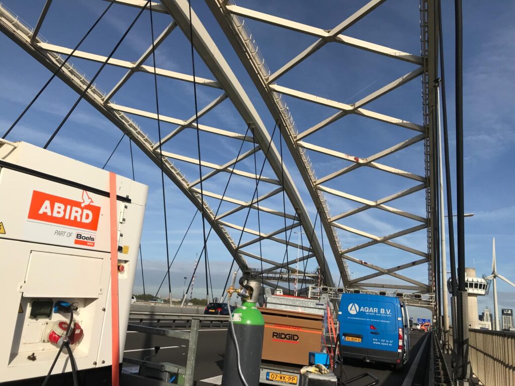 In 2018, dedicated maintenance work was carried out on the Van Brienenoord Bridge to keep the bridge safe and functional until the planned large-scale renovation. These activities include replacing bulbs under the deck, which was essential to the structural integrity of the bridge.